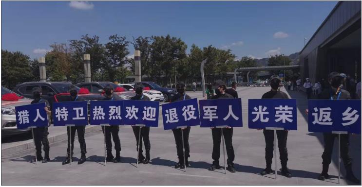 又是一年退伍季,為使返鄉退役軍人體會到家鄉黨和政府及社會的關懷,激 發退役軍人的獲得感、歸屬感、幸福感,增強其參與地方經濟、社會發展的使命 和責任,營造社會尊崇軍人的良好氛圍。9 月 1 日下午,永康市關愛退役軍人協 會多舉措認真做好 2021 年秋季迎接退役軍人光榮返鄉工作。 為了營造光榮返鄉濃厚氛圍,永康市關愛退役軍人協會---浙江獵人特衛安 保集團有限公司董事長董飛躍親自帶領行政、人事干部及三十余名特衛大隊及女 子特衛中隊隊員,在永康市高鐵南站出口處等分別整齊列隊高舉“熱烈歡迎退役 軍人光榮返鄉”和“昔日從戎報國志,今朝榮歸建家園”等組合牌,營造熱烈歡 迎氛圍,讓退役軍人感受到參軍光榮、返鄉亦榮耀的社會氛圍。