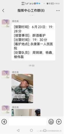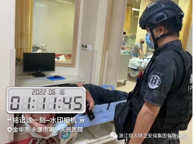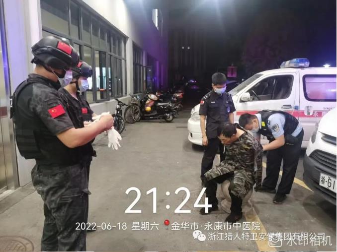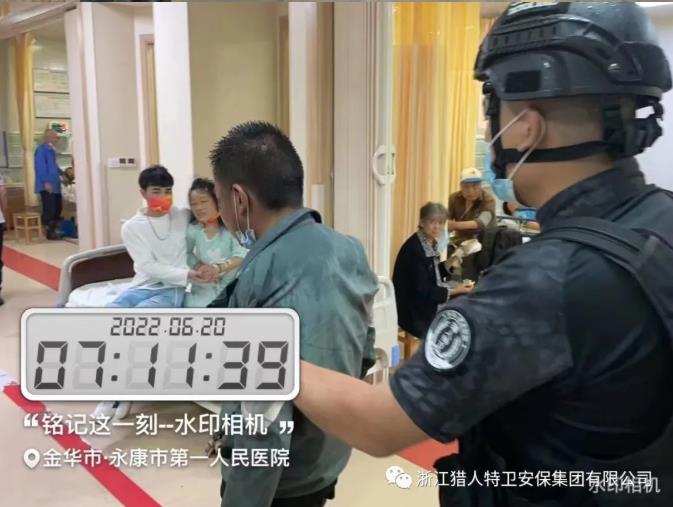 6月23日19時28分,浙江獵人特衛(wèi)安保集團有限公司接處警指揮中心接到永康市公安局110醉酒人員看護指令,在公司出警隊已全部應(yīng)急派出的情況下,立即調(diào)派應(yīng)急機動隊員周鋼潮、楊 鑫和樓偉磊前往永康市第一人民醫(yī)院。從接警到看護人員到達,6公里路程只用了11分鐘。