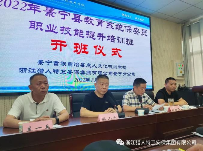 為進一步提升校園保安員綜合業務素質和履行職責能力,切實發揮校園保安人員在校園安全保衛工作中的作用,著力推動打造平安校園。2022年8月1日,浙江獵人特衛安保集團有限公司景寧分公司聯合景寧縣成人文化技術學校舉辦2022年景寧縣教育系統保安員職業技能提升系列培訓。