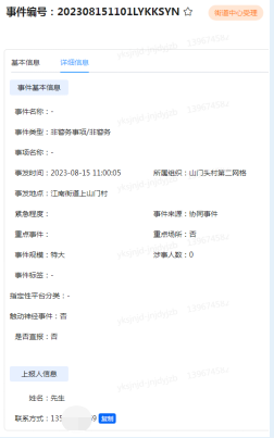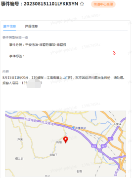 8月15日11時00分110接報:江南街道上山門村,雙方因經濟問題發生糾紛,請處理。報警人號碼:1350679XXXX。接到公安110分流信息,負責該區塊非警情警務處置的浙江獵人特衛安保集體有限公司不到20分鐘,協同處置隊伍就到