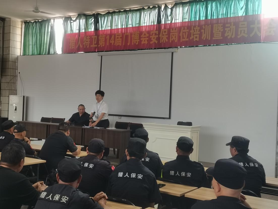 第14屆中國(永康)國際門業博覽會將于5月26日---28在會展中心召開。為切實做好本次門博會安保工作,浙江獵人特衛安保集團有限公司提前謀劃,按照“統一指揮、分級負責、整體聯動、無縫對接”的“大暢通、大安保”總體要求,于5月19日集中全體參勤保安人員、應急機動隊員及后勤保障人員在培訓基地召開門博會安保動員大會暨“防火、防盜、防暴恐、防擁擠踩踏、防安全事故”等全要素安保技能培訓。會展中心安保經理方 達特約參會。