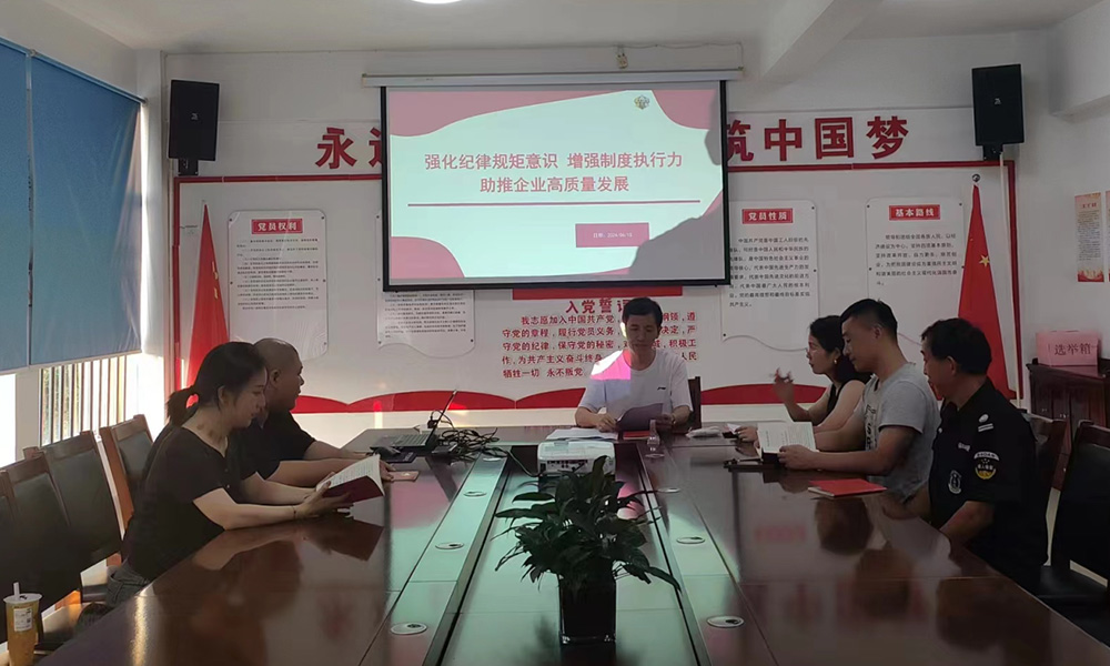 針對集團公司發展現狀,結合黨紀學習內容,呂書記就在守紀律講規矩上下功夫及在提高制度執行力上做表率方面與支部黨員進行了學習交流。呂書記指出黨有黨紀,國有國法。國無法不安,黨無紀不治。重點談了4個方面的紀律要求:嚴守政治紀律、嚴守組織紀律、嚴守經濟紀律、嚴守生活紀律。并指出制度的生命力在于執行,執行的關鍵在于執行力。不斷提高制度執行力,既是黨員干部履職盡責的基本要求,也是確保各項目標任務順利實現的重要保證。要求廣大黨員在強化紀律規矩意識、增強制度執行力的同時,還要弘揚擔當精神,增強實干本領。通過上主題黨課,目的就是要使黨紀國法和企業規章制度入腦入心,形成人人遵紀守法、執行制度的企業新風尚。