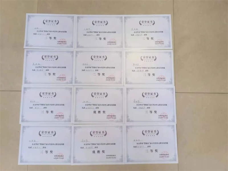 團(tuán)體賽第四名,兩個最小共治單元分別獲得“棍盾叉”二等獎,“隊列”三等獎。個人賽“油盆滅火”3個二等獎,2個三等獎,1個優(yōu)勝獎;“應(yīng)急救護(hù)”1個二等獎,2個三等獎;“安全檢查”1個三等獎,1個優(yōu)勝獎;“理論”1個三等獎。