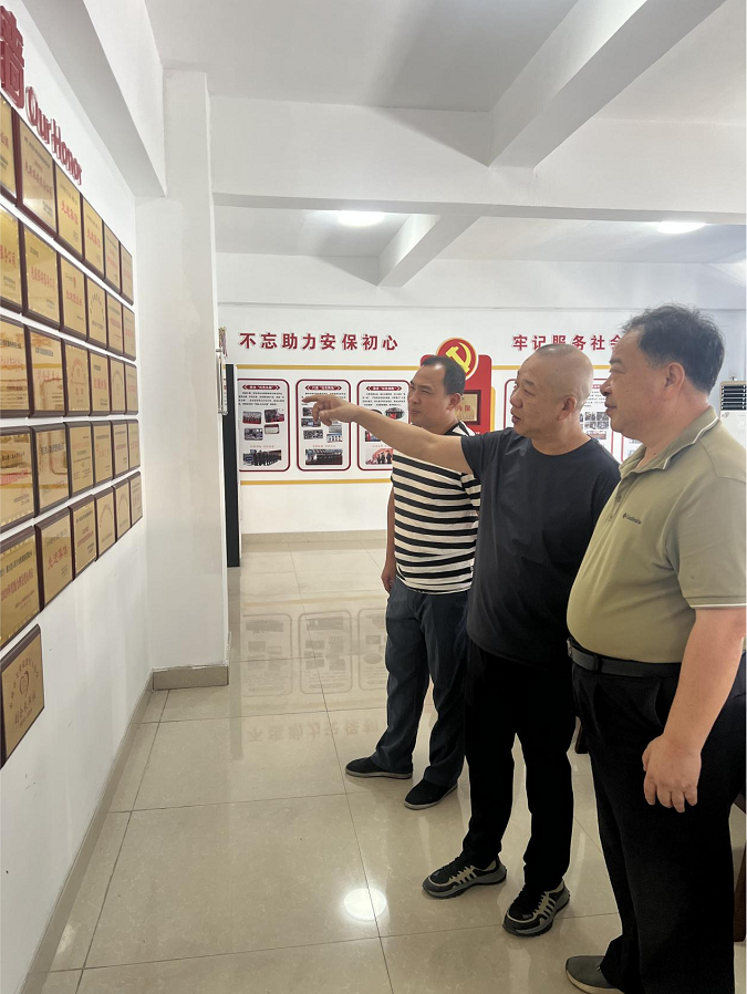 2025年9月9日,金華市保安協會童三才會長一行蒞臨浙江獵人特衛安保集團有限公司(以下簡稱“獵人特衛”)開展調研指導。調研組先駐足于獵人特衛企業文化展示區滿載榮譽的展示墻前,對獵人特衛獲得的榮譽與品牌積淀給予了肯定。