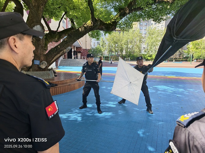 2025年9月26日,浙江獵人特衛安保集團有限公司與永康市公安局巡特警大隊緊密聯動,在民主小學開展了一場高規格的校園防恐演練。此次演練以巡特警大隊自主研發的“護苗傘盾”“護苗捕兜”兩大利器為核心,通過實戰化培訓提升安保團隊應急處置能力,為校園安全再添“科技+人力”雙保險。