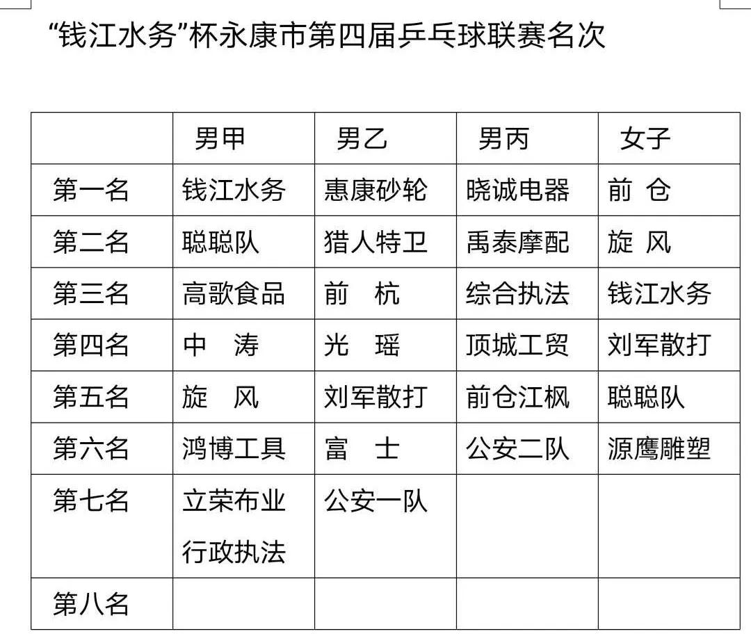 永康市乒乓球協會的“第四屆錢江水務杯乒乓球聯賽”