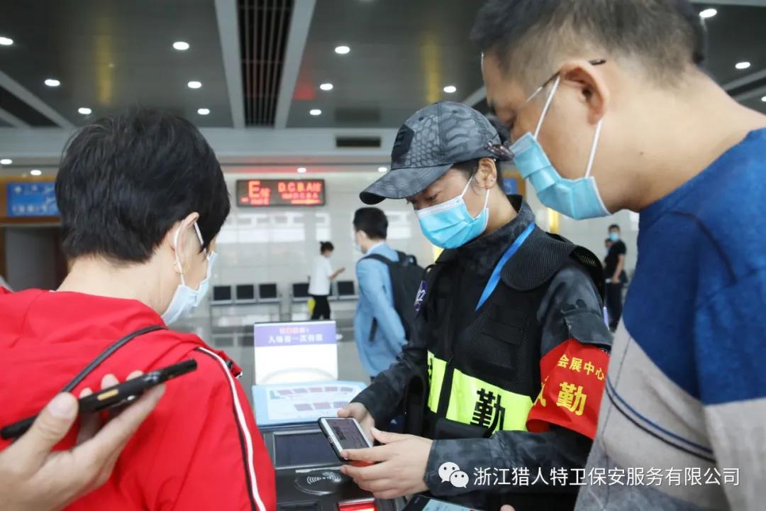 從布展到博覽會商務活動圓滿結束,獵人特衛保安公司全員嚴陣以待,嚴格落實責任,把安保和疫情防控工作的各項部署細化分解到每個崗位、每個保安員,做到層層傳導壓力、層層落實責任,包括專門安排健康檢查組每天上崗前對保安員進行健康碼查驗和三次體溫測試;會場各個進口安檢班隊對參展商及入場觀眾的健康碼核查、體溫檢測、執機檢查、手執掃描、手檢等崗位保安員的相互協作。巡邏安保班隊全面加強場館及周邊的安全巡查。現場指揮部、接處警指揮中心嚴格執行24小時值班備勤,時刻做好應對各種突發情況的準備等。